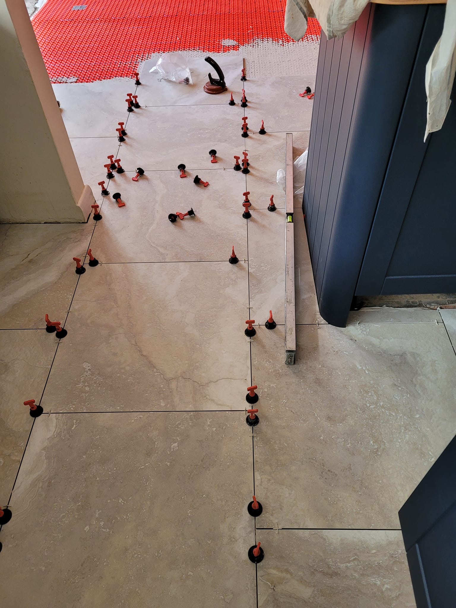 Using 600 x 600 tiles these bad boys are fun to lay but hurt the back in this older age.